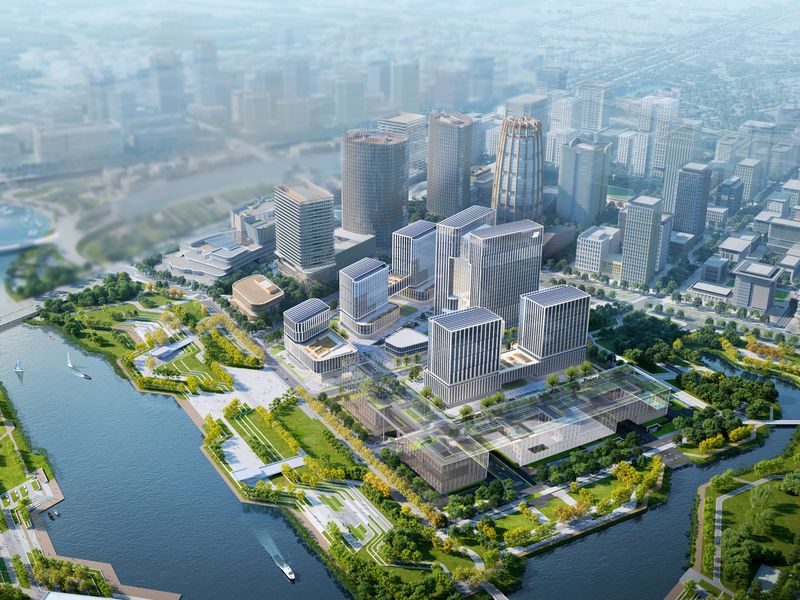 Diseñado como el barrio clave de la nueva «Ciudad del Futuro», el Campus de Oficinas China Huadian es un punto estratégico de anclaje en el eje urbano central del distrito de startups. El campus se centra en la interacción entre los espacios de trabajo, los espacios públicos abiertos y las zonas verdes.