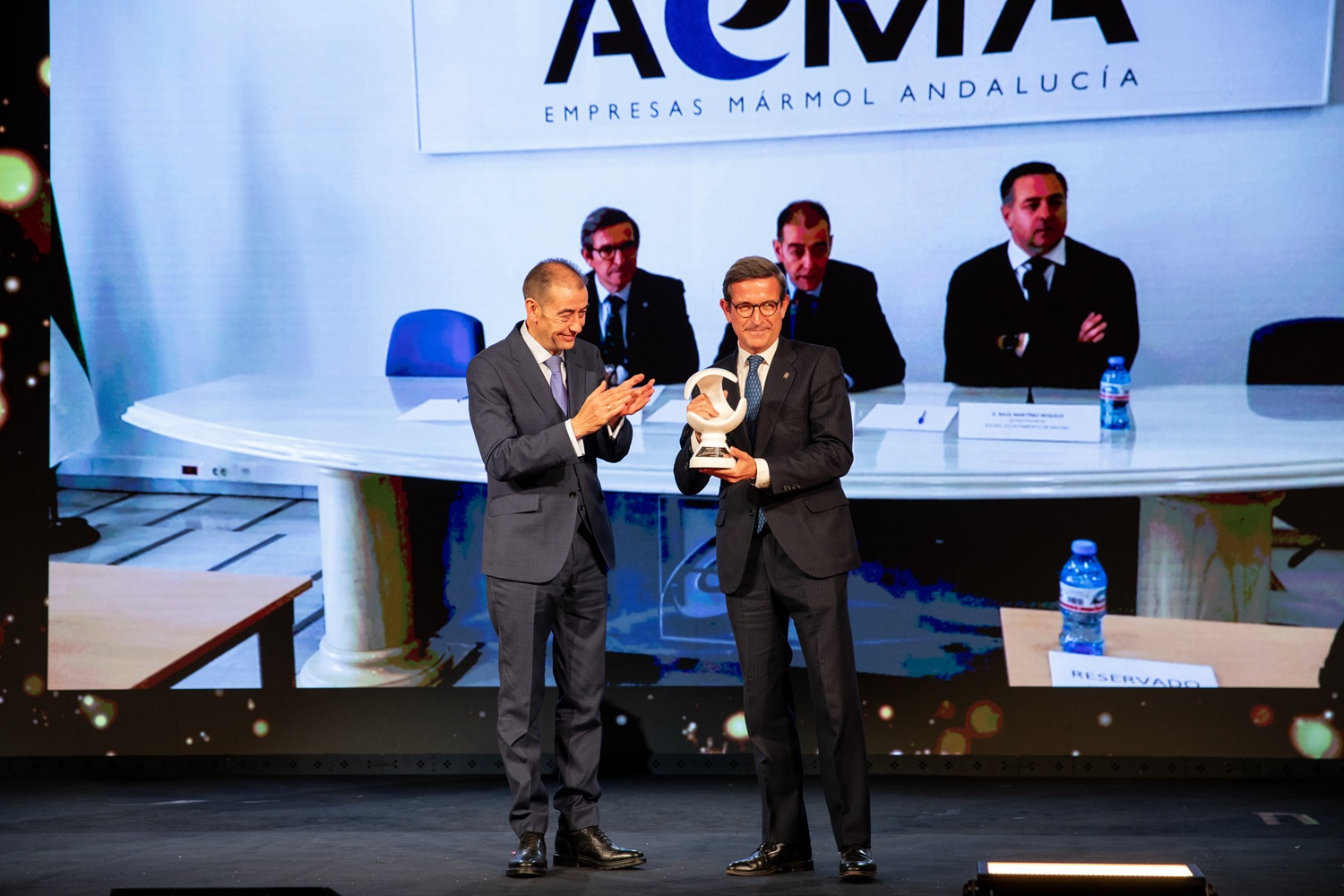 Pero la gala fue también el escenario para anunciar importantes avances conseguidos, especialmente, un anuncio largamente esperado: “Según ha manifestado esta misma mañana el Consejero de Industria, Energía y Minas, -informó Posadas-, la ansiada Orden de Garantías Financieras, por fin ha sido aprobada tanto por los servicios jurídicos de la Junta de Andalucía como por el consejo consultivo, y será llevada a consejo de Gobierno el próximo miércoles día 26, para que su aplicación sea efectiva en el próximo año 2026”. Recordó, además, la implantación de la FP Dual de Piedra Natural en el IES Juan Rubio Ortiz, la convocatoria de incentivos del Plan CRECE Industria, que pone a disposición del sector más de 18,8 millones de euros, o la nueva Orden de Incentivos a la Internacionalización de TRADE, que permitirá a las empresas competir en igualdad de condiciones en los mercados exteriores.