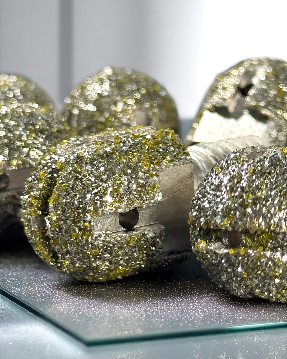Este sistema se basa en una técnica en la que la zona diamantada está compuesta exclusivamente por diamante, fijado mediante níquel por inmersión en un baño electrolítico. Gracias a este procedimiento, se logra una unión precisa, uniforme y de alta durabilidad, garantizando un rendimiento constante y sin deformación al realizar molduras.