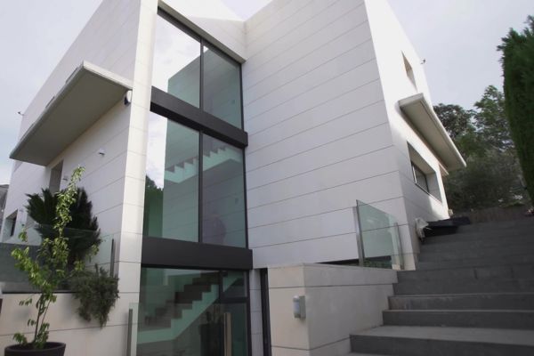 En este moderno chalet que se caracteriza por su revestimiento con fachada ventilada en piedra caliza, la empresa Maxx Protecc realizó una limpieza e higienización para acabar con líquenes, algas y ennegrecidos que se generaron en las superficies exteriores, así como una protección hidrorrepelente contra agentes atmosféricos.