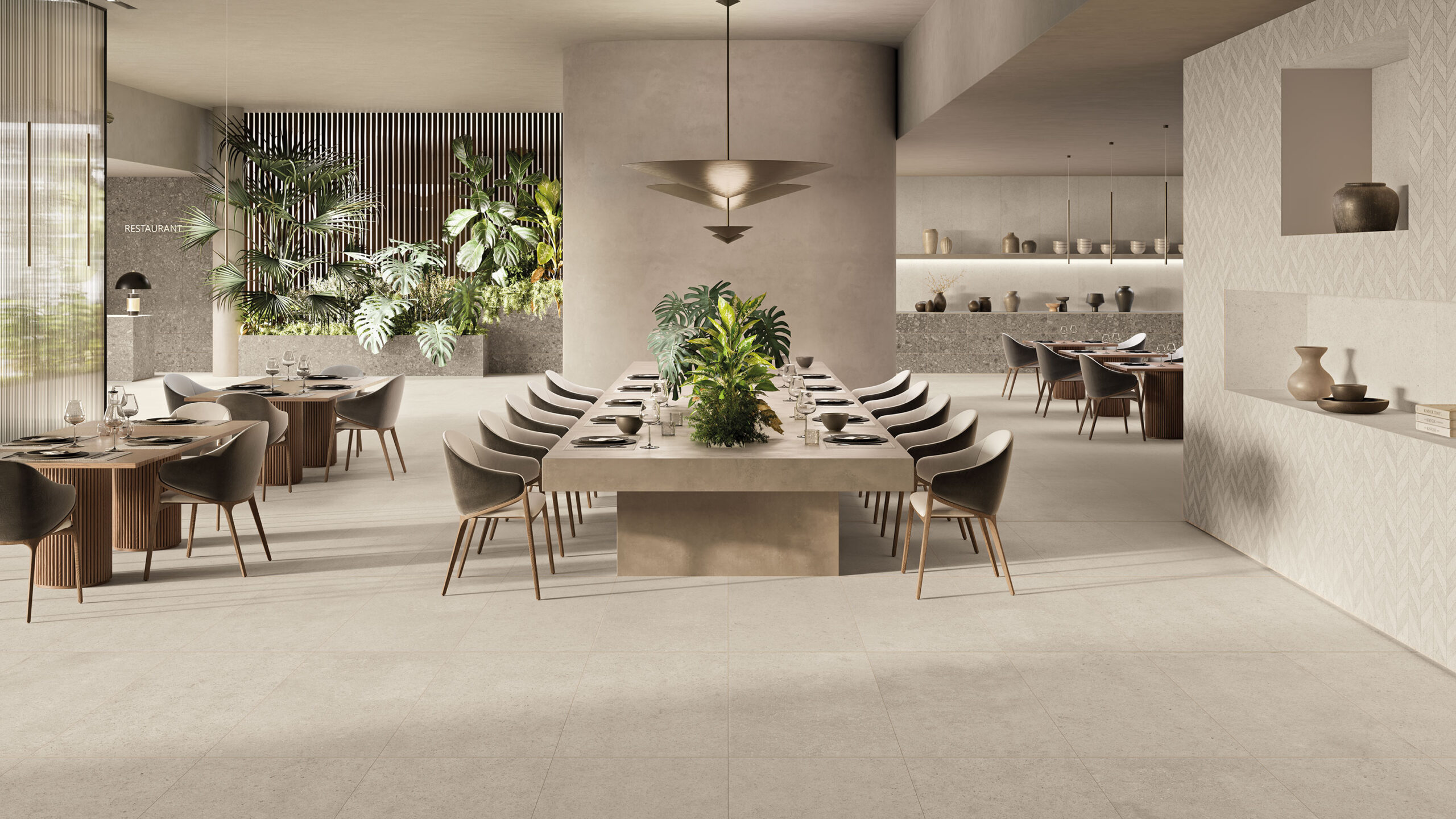 Evolucionando hacia una estética más fresca y minimalista, los fabricantes apuestan esta temporada por la tranquilidad, la textura y los efectos de piedra atemporales. Esta tendencia representa un regreso colectivo a espacios estructurados y silenciosos, tonos desaturados y la integridad de materiales duraderos. El enfoque eleva superficies elementales como el hormigón y las piedras marfil a expresiones refinadas y táctiles de un diseño sereno y sofisticado.