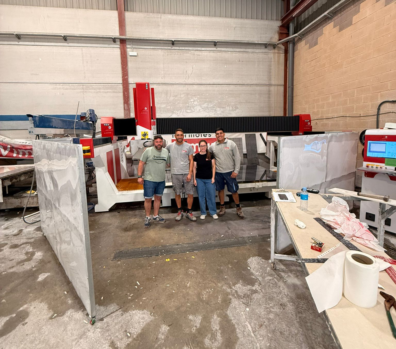 Según la compañía, se han instalado tres unidades de la cortadora CNC 5 ejes Columbus en distintos talleres de marmolería, incluyendo una en Mármoles G&S (Monforte del Cid) y otra en Barcelona (con la colaboración de Manuel Ferre) y una tercera en Máquina instalada en Mármoles Vimac en Coín (Málaga). La adquisición de estas máquinas responde a una clara apuesta por la automatización, precisión y eficiencia en el mecanizado de piezas de grandes dimensiones o con geometrías complejas.
