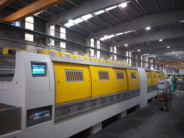 Se trata de una nueva línea de pulido de la marca Simec que consta de 20 cabezales y doble puente independiente, modificada e instalada por la empresa Castrotek con la que cuentan habitualmente para diversas labores de mantenimiento. Han confiado en esta marca por sus años de experiencia en la fabricación de maquinaria para el corte y elaboración de la piedra natural y por la fiabilidad y confianza que ésta les inspira.