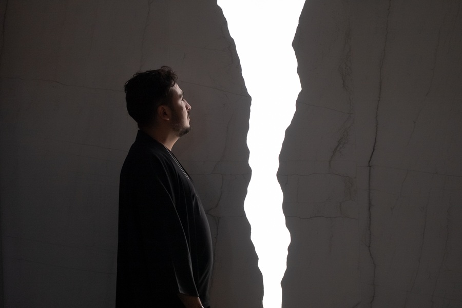 Mareo, el autor de la obra, añade: “Neolith aporta la materialidad esencial que necesitaba la pieza; su superficie mineral y pura refuerza la idea de permanencia y silencio, transformando el contenedor en una cámara de contemplación donde la grieta se convierte en fuente de energía y equilibrio.”