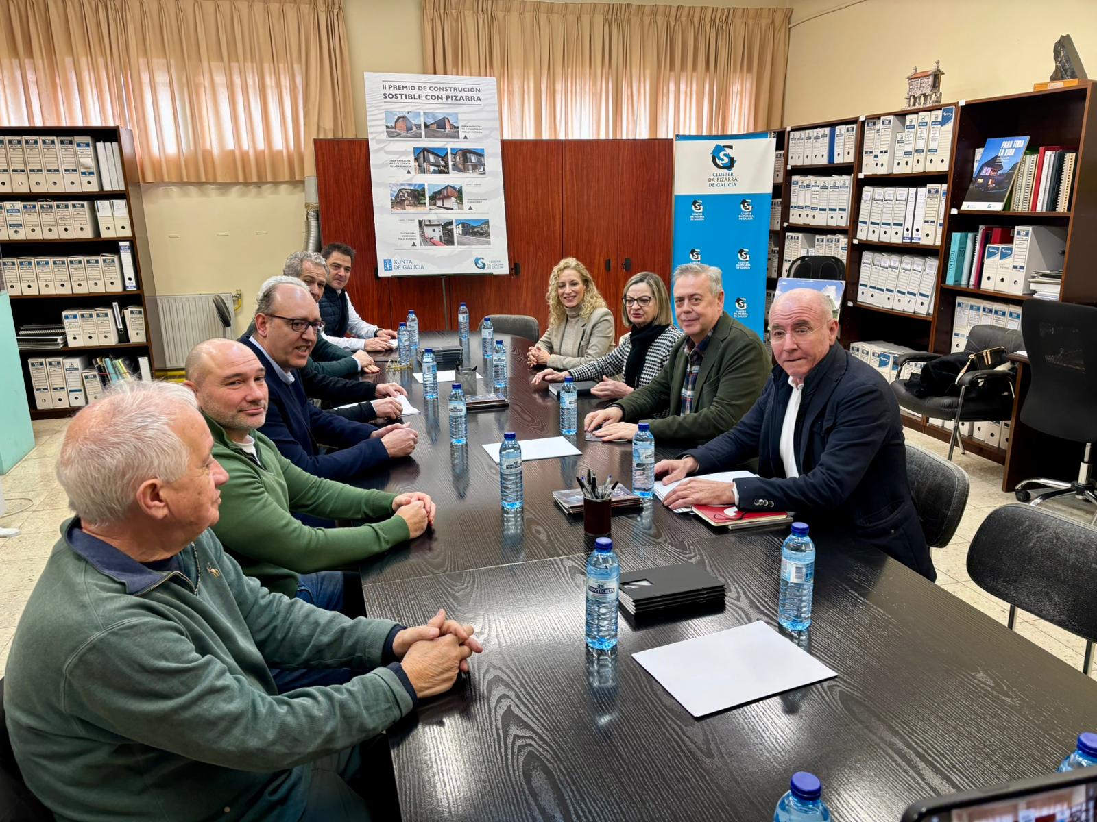 El titular de la cartera sanitaria de la Xunta, acompañado por el gerente del área sanitaria, Santiago Camba, visitó las instalaciones del Clúster de la Pizarra en Carballeda de Valdeorras, donde mantuvo una reunión con su presidente, Eliseo López Alonso, y con varios miembros de la junta directiva.