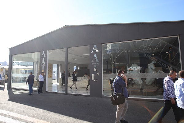 En la zona exterior y muy cercana a la entrada principal de Marmomac podíamos ver el stand de la italiana AATC, empresa especializada en la distribución de tablas de alta gama en donde destacan los ónices y los mármoles y granitos exclusivos. En su stand también presentaban Janus Italia- Lighting Stone by Lorenzo, una tecnología patentada pensada para la iluminación de piedra.