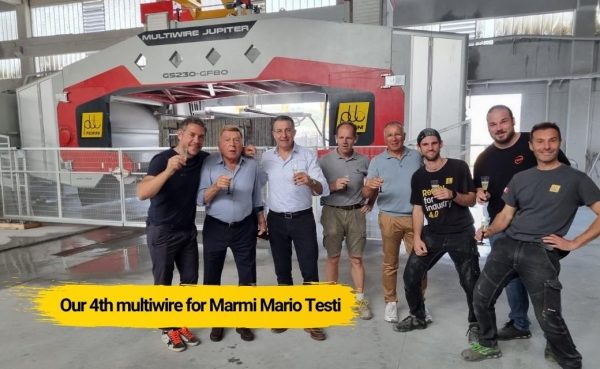 La relación de la firma de Carrara con el fabricante de maquinaria Pedrini comenzó en 2018 cuando suministraron a su primera máquina de multihilo de 80 hilos. Ahora, cuatro años después, Pedrini está vuelta en Verona para instalar la cuarta multihilo Júpiter GS230 para ellos.