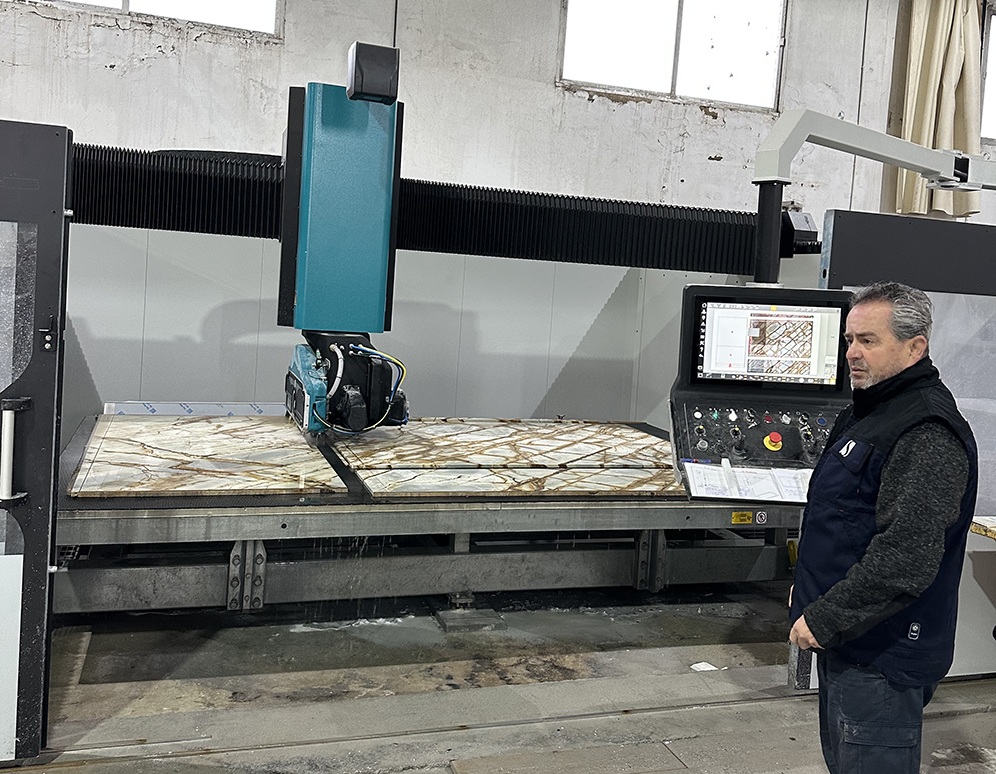 Desde hace 21 años Mármoles Santo Domingo cuenta con una tecnología similar mediante una máquina de control numérico tipo banco de trabajo, de la marca Gadia. “Dominamos esta tecnología y, además, el conocimiento del tratamiento de los materiales. La máquina no funciona sola: es imprescindible entender la relación entre máquina, herramientas y materiales para lograr un uso óptimo”.