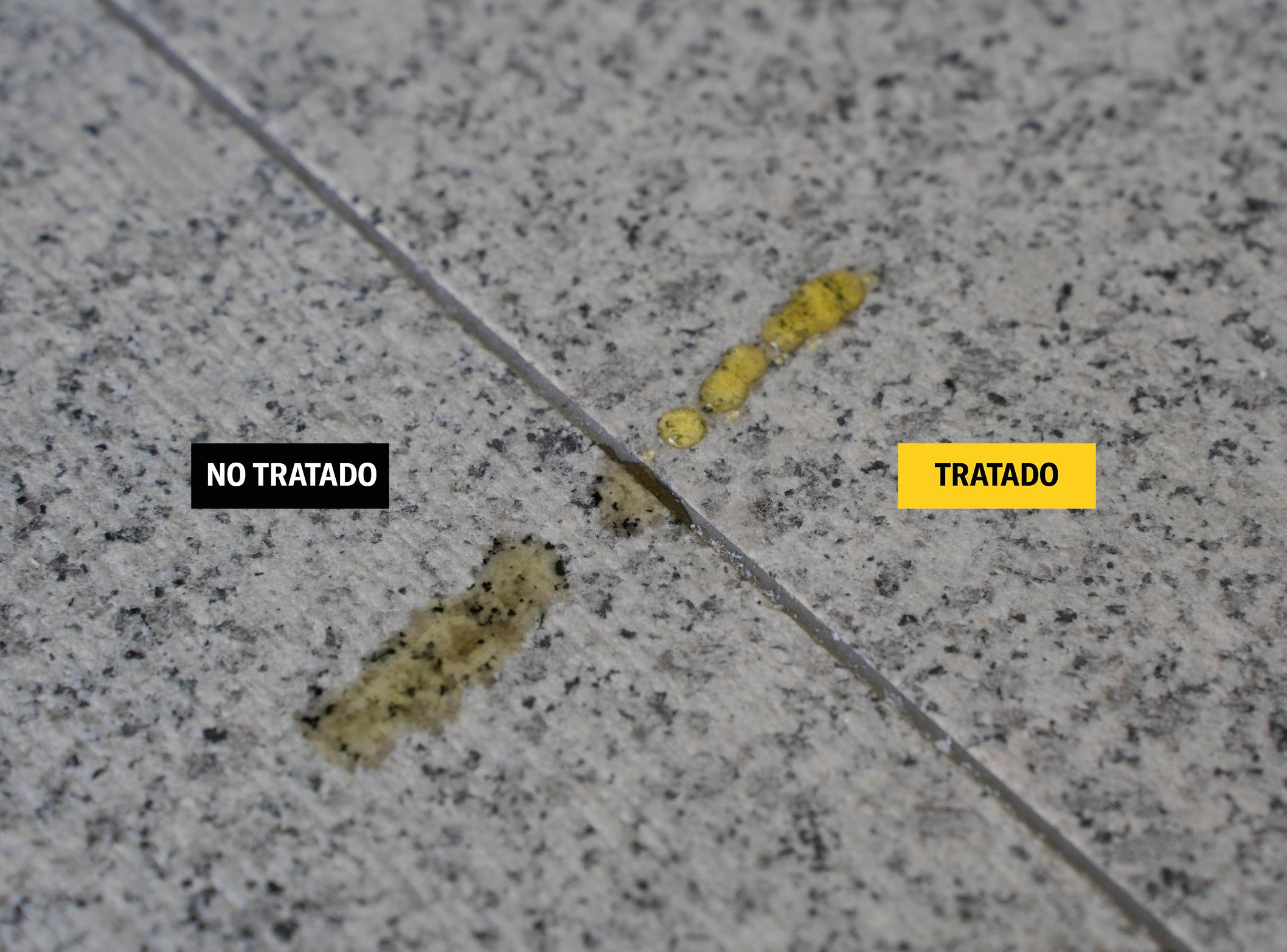 La textura del granito abujardado es tan porosa que permite que partículas, aceites, líquidos y otras sustancias penetran profundamente, cambiando el aspecto original del material e incluso deteriorando la superficie.