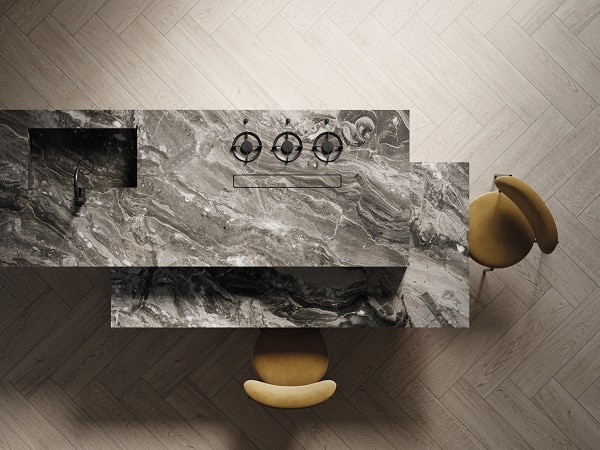 En definitiva, «Kitchen» muestra nuevos espacios de cocina y nuevas ideas de interiorismo a partir del compacto sinterizado Xtone y de la piedra natural Altissima.